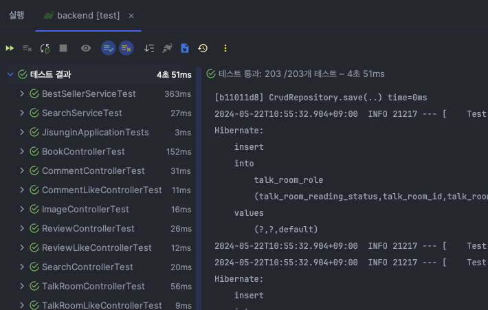 힘들긴 했지만 .. 테스트 코드 덕분에 통해 코드의 품질이 올라갔다고 생각한다.