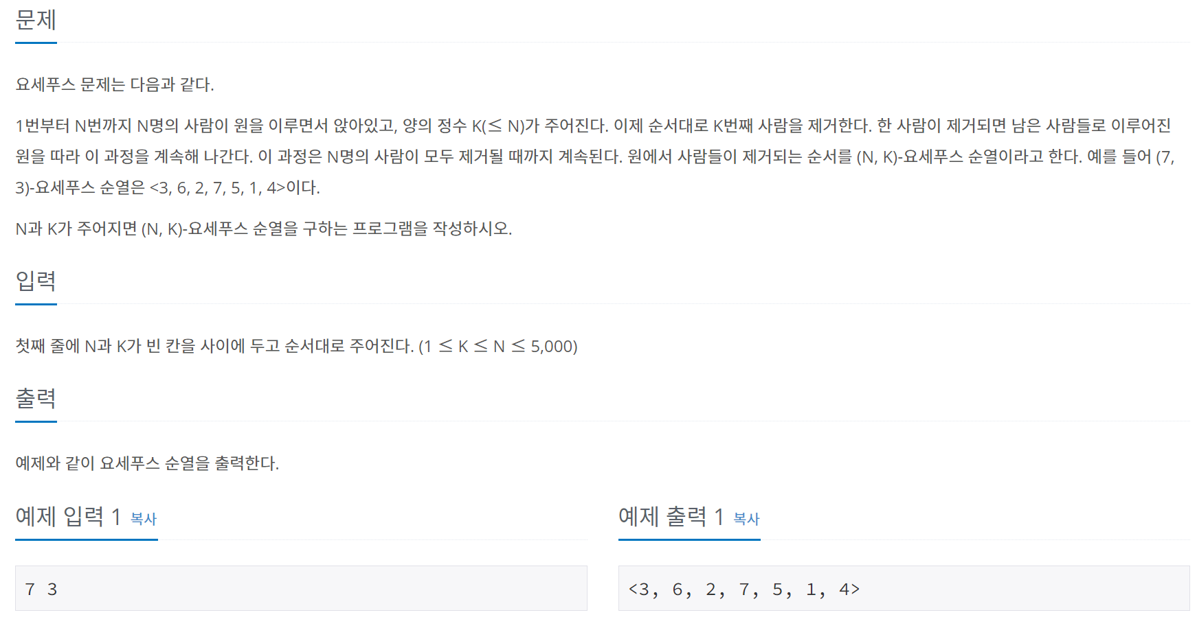 첫째 줄에 N과 K가 빈 칸을 사이에 두고 순서대로 주어진다. (1 ≤ K ≤ N ≤ 5,000)