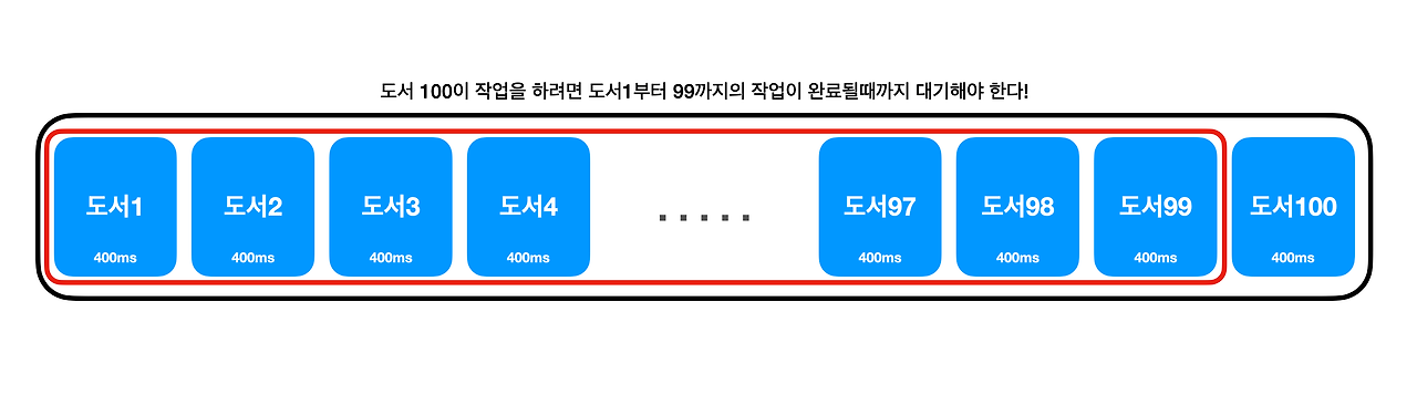 첫 번째 도서의 정보를 가져온 후, 두 번째 도서의 정보를 가져오는 방식으로 처리되고 있어서 전체적인 처리 시간이 크게 증가한다.