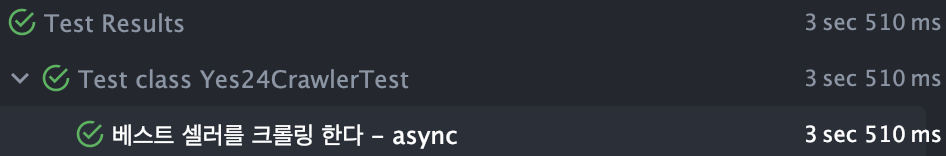 현재 코드에서의 문제점은 모든 도서에 대한 HTTP 요청이 순차적으로 처리되어서 크롤링 시간이 비효율적으로 소요된다.