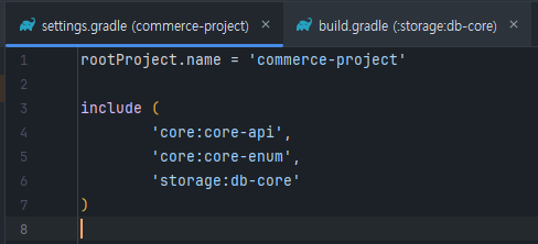 다음은 core-api와 db-core다. core-enum은 공통으로 사용되는 상수 값을 저장하기에 build.gradle이 없고 jar만 필요하다.
